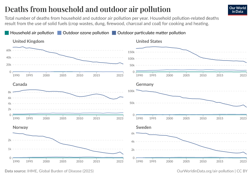 Hannah Ritchie and Pablo Rosado (2025) - “Air pollution kills millions every year — where does it come from?” Published online at OurWorldinData.org. Retrieved from: 'https://search-refactor-react-query.owid.pages.dev/air-pollution-sources' [Online Resource]BibTeX citation