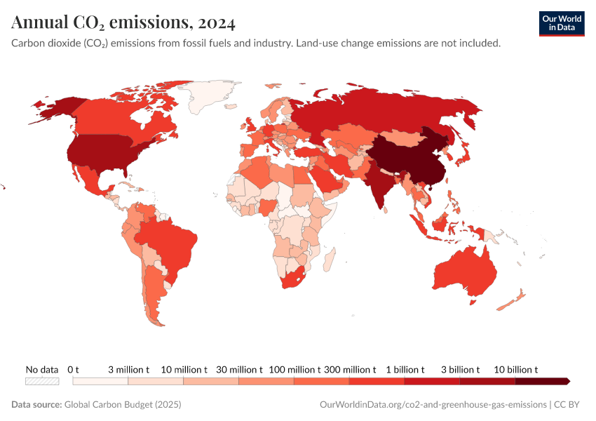 Hannah Ritchie (2019) - “Who emits the most CO2 today?” Published online at OurWorldinData.org. Retrieved from: 'https://search-refactor-react-query.owid.pages.dev/annual-co2-emissions' [Online Resource]BibTeX citation