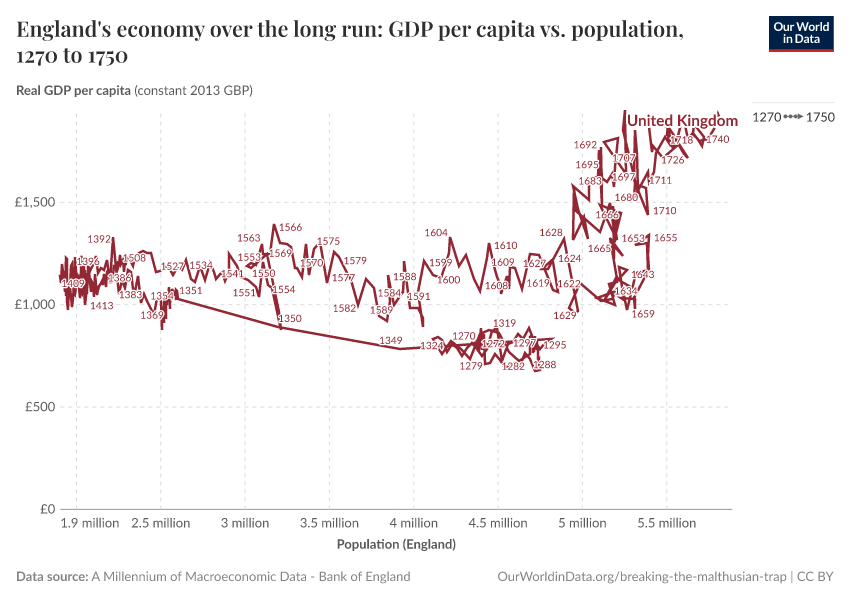 Max Roser (2020) - “Breaking out of the Malthusian trap: How pandemics allow us to understand why our ancestors were stuck in poverty” Published online at OurWorldinData.org. Retrieved from: 'https://search-refactor-react-query.owid.pages.dev/breaking-the-malthusian-trap' [Online Resource]BibTeX citation
