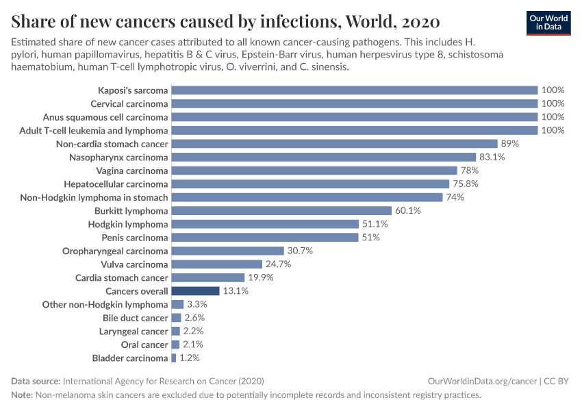 In total, it’s estimated that around 13% of all cancers worldwide were caused by infections in 2020.