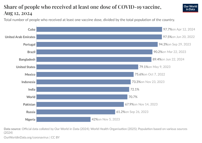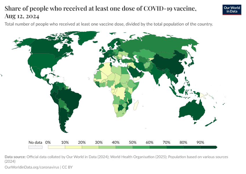 Edouard Mathieu, Hannah Ritchie, Lucas Rodés-Guirao, Cameron Appel, Daniel Gavrilov, Charlie Giattino, Joe Hasell, Bobbie Macdonald, Saloni Dattani, Diana Beltekian, Esteban Ortiz-Ospina, and Max Roser (2020) - “Coronavirus (COVID-19) Vaccinations” Published online at OurWorldinData.org. Retrieved from: 'https://search-refactor-react-query.owid.pages.dev/covid-vaccinations' [Online Resource]BibTeX citation