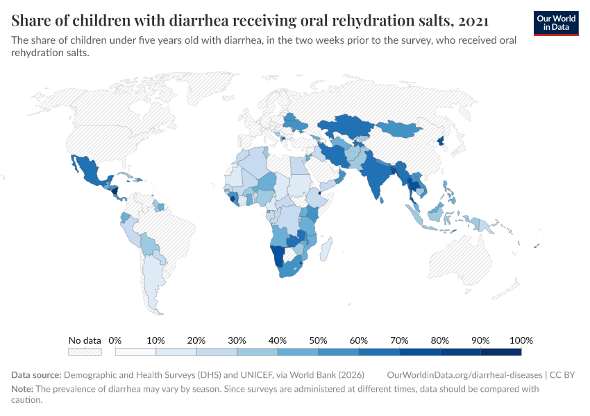 This page shows estimates of diarrheal death rates worldwide and the pathogens that cause them. We also offer data on access to public health measures and how they have changed.