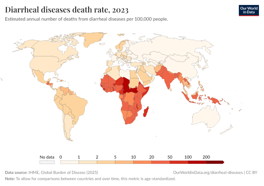 Saloni Dattani, Fiona Spooner, Hannah Ritchie, and Max Roser (2023) - “Diarrheal Diseases” Published online at OurWorldinData.org. Retrieved from: 'https://search-refactor-react-query.owid.pages.dev/diarrheal-diseases' [Online Resource]BibTeX citation