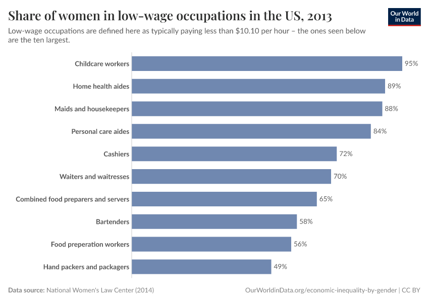 Representation of women in low-paying jobs