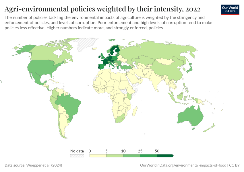 Hannah Ritchie (2024) - “How effective are policies in reducing the environmental impacts of agriculture?” Published online at OurWorldinData.org. Retrieved from: 'https://search-refactor-react-query.owid.pages.dev/effective-policies-reducing-environmental-impacts-agriculture' [Online Resource]BibTeX citation