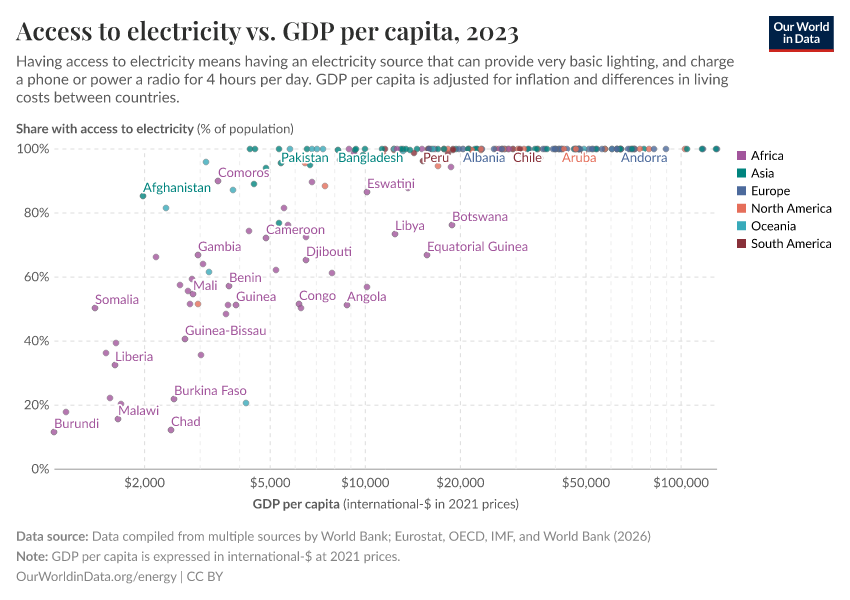 Hannah Ritchie, Pablo Rosado, and Max Roser (2019) - “Access to Energy” Published online at OurWorldinData.org. Retrieved from: 'https://search-refactor-react-query.owid.pages.dev/energy-access' [Online Resource]BibTeX citation