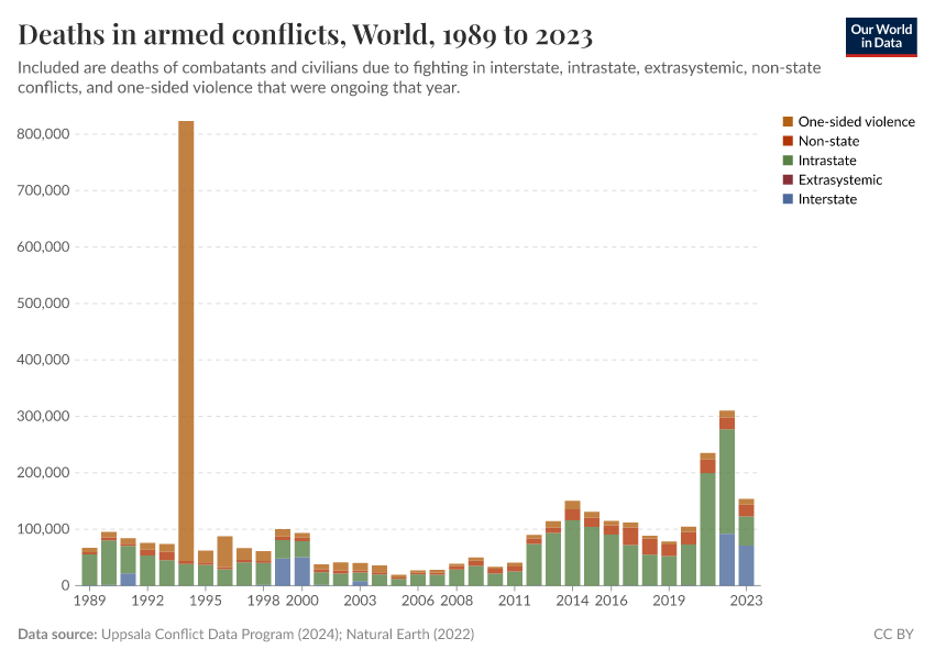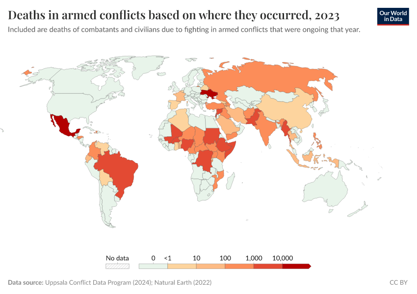 Explore conflict deaths and death rates across the world's countries.