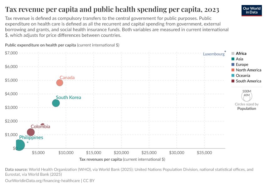 Esteban Ortiz-Ospina and Max Roser (2017) - “Healthcare Spending” Published online at OurWorldinData.org. Retrieved from: 'https://search-refactor-react-query.owid.pages.dev/financing-healthcare' [Online Resource]BibTeX citation