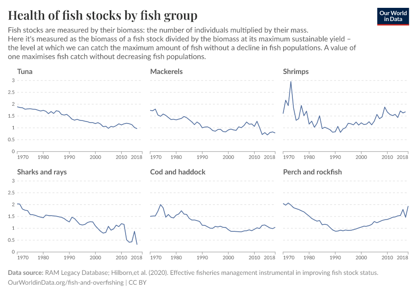 Hannah Ritchie and Max Roser (2021) - “Fish and Overfishing” Published online at OurWorldinData.org. Retrieved from: 'https://search-refactor-react-query.owid.pages.dev/fish-and-overfishing' [Online Resource]BibTeX citation