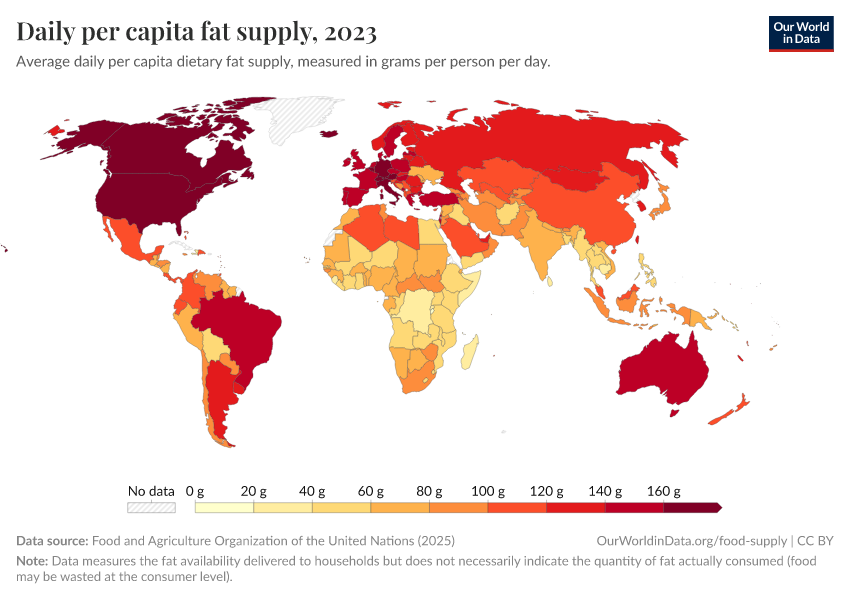 World map of fat supply