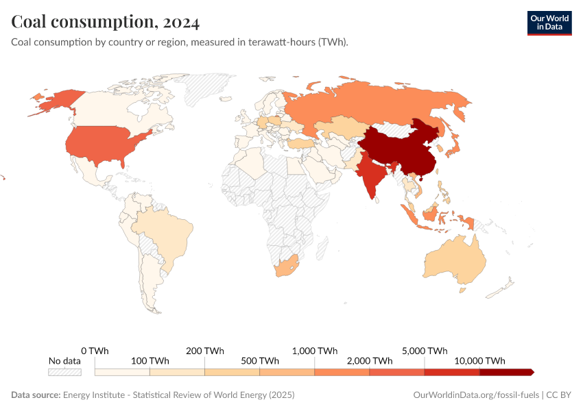 This interactive map shows the share of electricity that comes from coal worldwide.