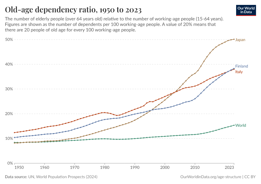 “Data Page: Old-age dependency ratio, age old”. Our World in Data (2025). Data adapted from United Nations. Retrieved from https://search-refactor-react-query.owid.pages.dev/grapher/age-dependency-ratio-old [online resource]How to cite this data