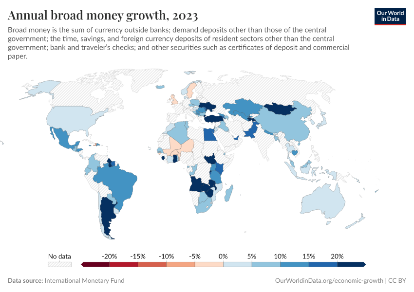 “Data Page: Annual broad money growth”. Our World in Data (2025). Data adapted from International Monetary Fund. Retrieved from https://search-refactor-react-query.owid.pages.dev/grapher/annual-broad-money-growth [online resource]How to cite this data