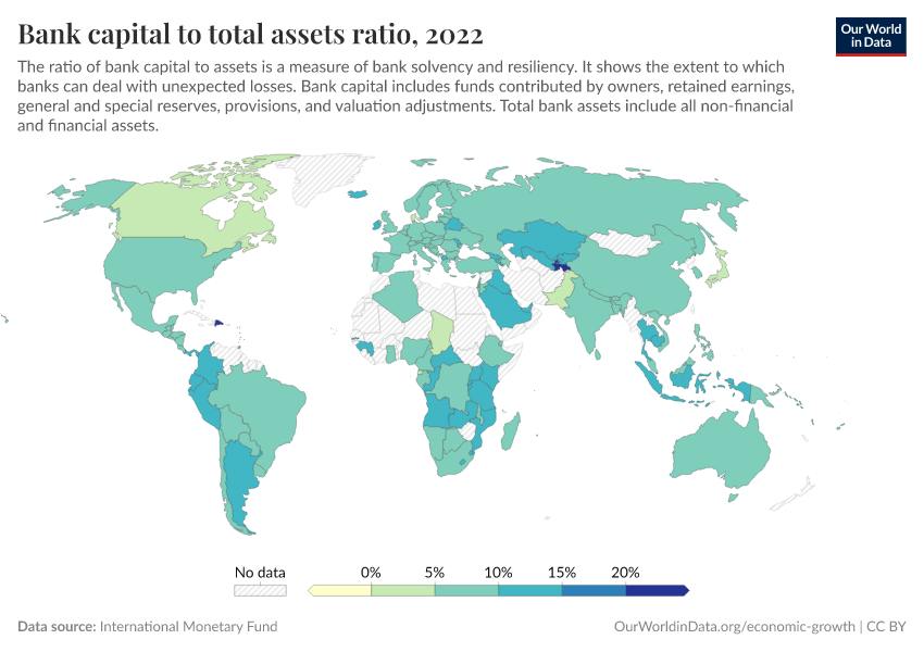 “Data Page: Bank capital to total assets ratio”. Our World in Data (2025). Data adapted from International Monetary Fund. Retrieved from https://search-refactor-react-query.owid.pages.dev/grapher/bank-capital-to-total-assets-ratio [online resource]How to cite this data