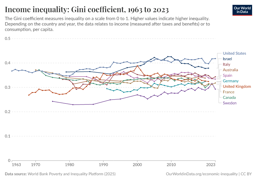 World Bank Poverty and Inequality Platform (2024) – with major processing by Our World in Data. “Gini Coefficient – World Bank” [dataset]. World Bank Poverty and Inequality Platform, “World Bank Poverty and Inequality Platform (PIP) 20240627_2017, 20240627_2011” [original data]. Retrieved September 17, 2025 from https://search-refactor-react-query.owid.pages.dev/grapher/economic-inequality-gini-index