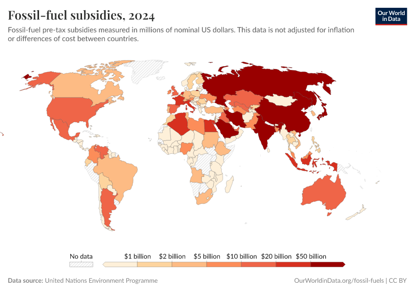 “Data Page: Fossil-fuel subsidies”. Our World in Data (2025). Data adapted from United Nations Environment Programme. Retrieved from https://search-refactor-react-query.owid.pages.dev/grapher/fossil-fuel-subsidies [online resource]How to cite this data