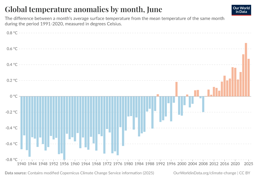 Contains modified Copernicus Climate Change Service information (2025) – with major processing by Our World in Data. “Global temperature anomalies by month” [dataset]. Contains modified Copernicus Climate Change Service information, “ERA5 monthly averaged data on single levels from 1940 to present 2” [original data]. Retrieved September 17, 2025 from https://search-refactor-react-query.owid.pages.dev/grapher/global-temperature-anomalies-by-month