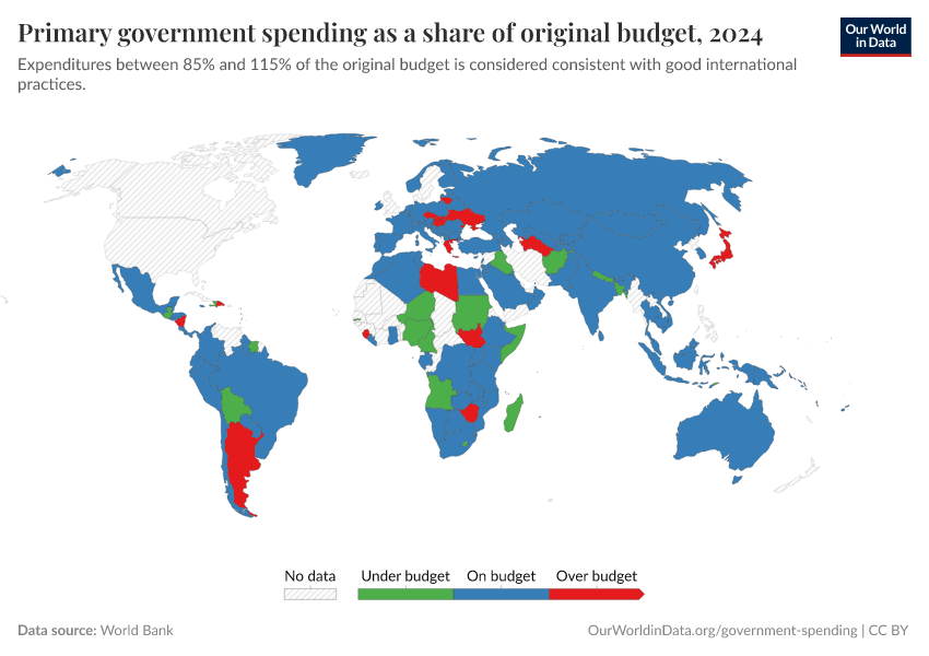 “Data Page: Primary government expenditures as a share of original budget”. Our World in Data (2025). Data adapted from World Bank. Retrieved from https://search-refactor-react-query.owid.pages.dev/grapher/govt-expenditure-share-budget [online resource]How to cite this data