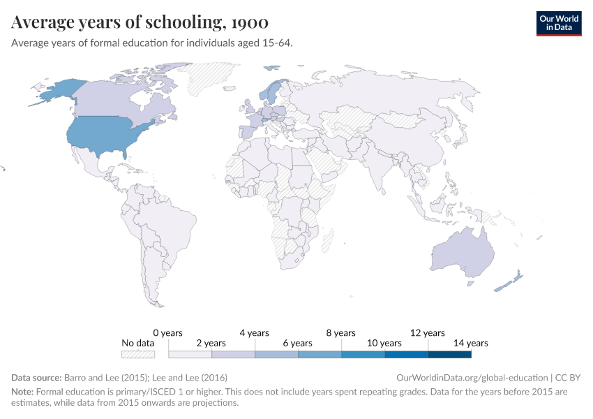 Barro and Lee (2015); Lee and Lee (2016) – with major processing by Our World in Data. “Average years of schooling” [dataset]. Barro and Lee, “Projections of Educational Attainment”; Lee and Lee, “Human Capital in the Long Run” [original data]. Retrieved September 17, 2025 from https://search-refactor-react-query.owid.pages.dev/grapher/mean-years-of-schooling-long-run