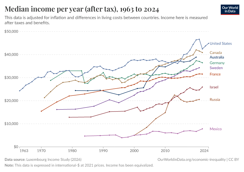 “Data Page: Median income (after tax)”, part of the following publication: Joe Hasell, Bertha Rohenkohl, Pablo Arriagada, Esteban Ortiz-Ospina, and Max Roser (2022) - “Poverty”. Data adapted from Luxembourg Income Study. Retrieved from https://search-refactor-react-query.owid.pages.dev/grapher/median-income-after-tax-lis [online resource]How to cite this data