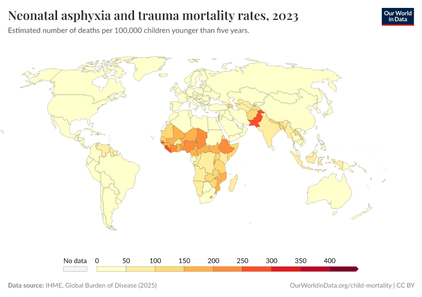 IHME, Global Burden of Disease (2024) – with minor processing by Our World in Data. “Neonatal asphyxia and trauma mortality rates” [dataset]. IHME, Global Burden of Disease, “Global Burden of Disease - Deaths and DALYs” [original data]. Retrieved September 17, 2025 from https://search-refactor-react-query.owid.pages.dev/grapher/mortality-neonatal-asphyxia-and-trauma