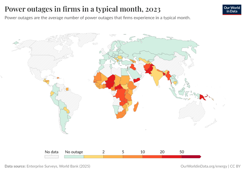 Power outages are the average number of power outages that establishments experience in a typical month.
