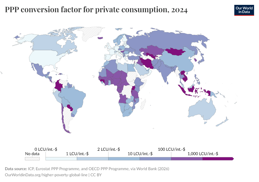 “Data Page: PPP conversion factor for private consumption”. Our World in Data (2025). Data adapted from Eurostat, OECD, and World Bank. Retrieved from https://search-refactor-react-query.owid.pages.dev/grapher/ppp-conversion-factor-for-private-consumption [online resource]How to cite this data