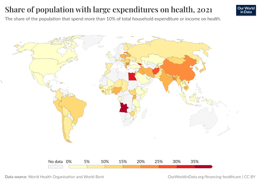 “Data Page: Share of population with large expenditures on health”. Our World in Data (2025). Data adapted from World Health Organization and World Bank. Retrieved from https://search-refactor-react-query.owid.pages.dev/grapher/share-of-population-with-large-household-expenditures-on-health-10pc [online resource]How to cite this data