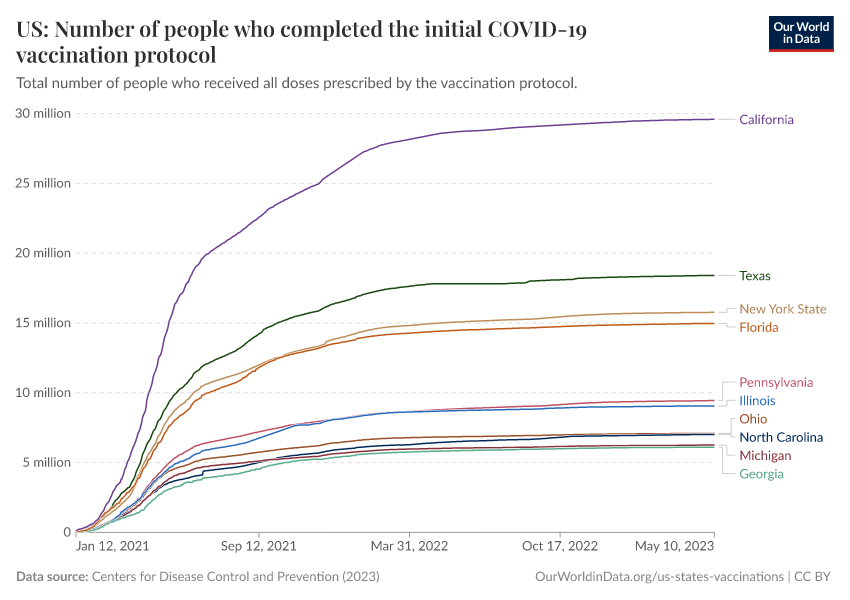 Centers for Disease Control and Prevention (2023) – processed by Our World in Data. “US: Number of people who completed the initial COVID-19 vaccination protocol” [dataset]. Centers for Disease Control and Prevention, “COVID-19, Vaccinations (United States)” [original data]. Retrieved September 17, 2025 from https://search-refactor-react-query.owid.pages.dev/grapher/us-covid-number-fully-vaccinated