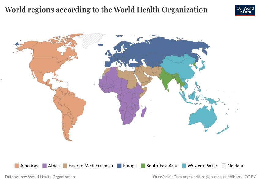 “Data Page: World regions according to the World Health Organization”. Our World in Data (2025). Data adapted from World Health Organization. Retrieved from https://search-refactor-react-query.owid.pages.dev/grapher/who-regions [online resource]How to cite this data