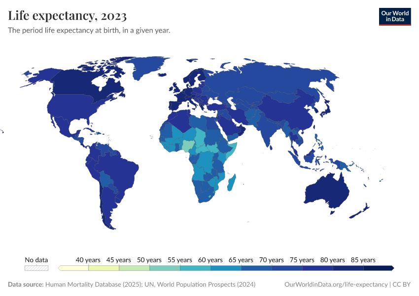 Saloni Dattani, Lucas Rodés-Guirao, Hannah Ritchie, Esteban Ortiz-Ospina, and Max Roser (2023) - “Life Expectancy” Published online at OurWorldinData.org. Retrieved from: 'https://search-refactor-react-query.owid.pages.dev/life-expectancy' [Online Resource]BibTeX citation