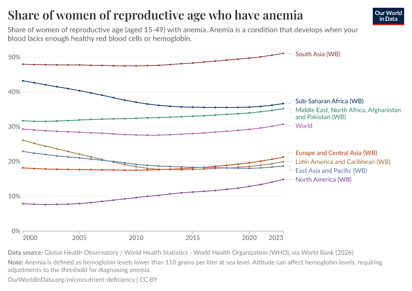 In the chart, we see the prevalence of anemia in women of reproductive age.