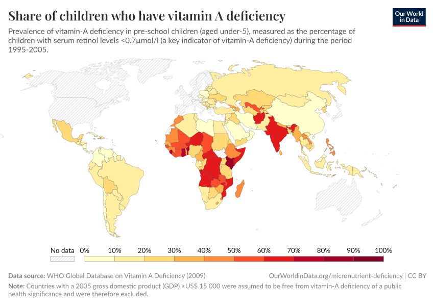 Data collection on micronutrient deficiencies is often sporadic and less consistent than indicators of energy-protein malnutrition — time-series data for most countries is therefore unavailable.