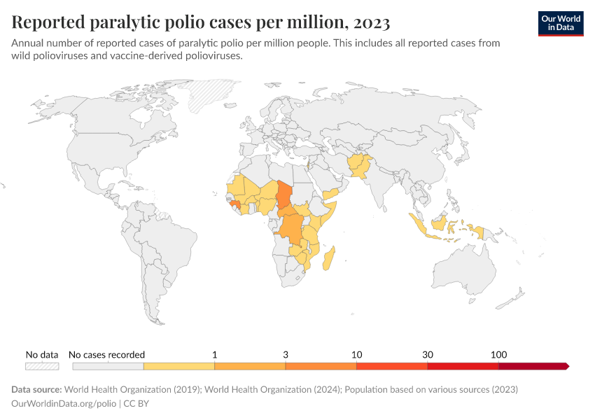 Saloni Dattani, Fiona Spooner, Sophie Ochmann, and Max Roser (2022) - “Polio” Published online at OurWorldinData.org. Retrieved from: 'https://search-refactor-react-query.owid.pages.dev/polio' [Online Resource]BibTeX citation