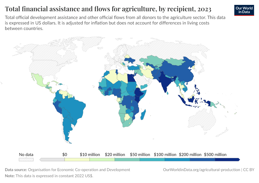 This indicator is measured as disbursements of official development assistance (ODA) and other official flows to the agriculture sector.