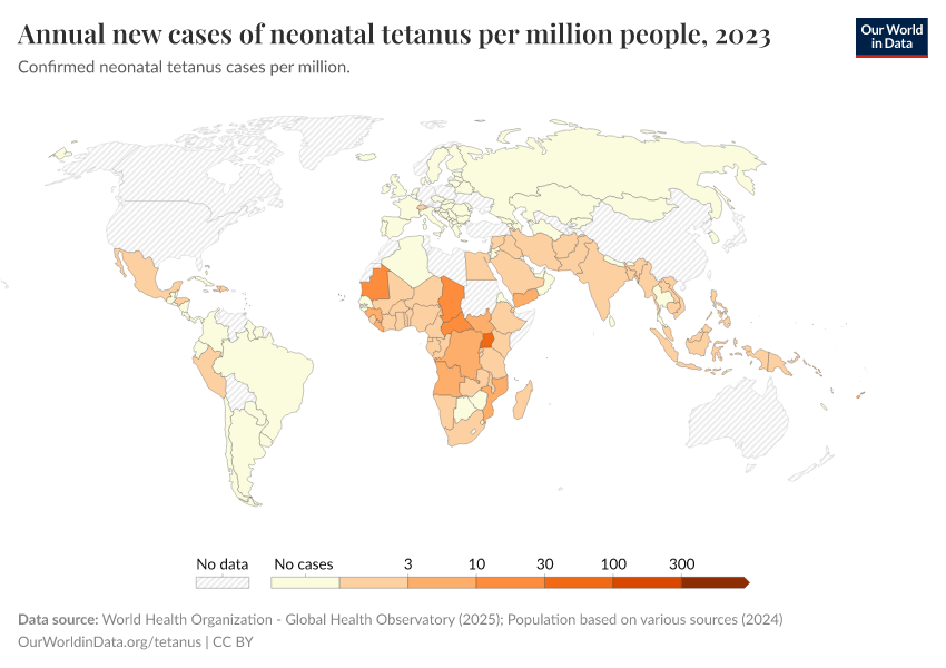 New tetanus cases by country